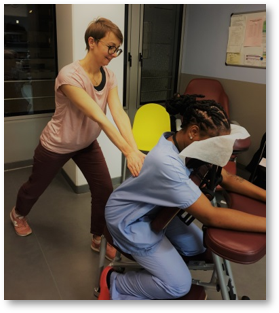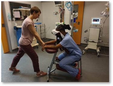 L’hôpital est un lieu où l’on soigne. Chaque jour, à Necker, des milliers de personnes prennent soin des autres. Qui pour prendre soin d’eux ? L’association ARCFA et l'association Petit Cœur de Beurre offrent au service de cardiologie l’opportunité de recevoir un massage Amma assis. Karen Lechartier y vient cultiver le bien-être toutes les semaines. « Prendre soin de ceux qui soignent, accueillent, rendent l’hospitalisation moins pénible est une réelle fierté ». (Karen Lechartier) QU’EST-CE QUE LE AMMA MASSAGE ? Le massage Amma signifie « calmer par le toucher ». Il est à l’origine des massages d’acupression tel que le Shiatsu. Il se réalise sur une chaise ergonomique de Shiatsu en position assise. Il a pour but de soulager les tensions musculaires ainsi que les avantages en matière diminution du stress, d’amélioration de la concentration, de gain de productivité et d’efficacité. À QUELLE FRÉQUENCE ? Karen Lechartier, spécialisée dans le bien-être au travail, intervient auprès des professionnels de la cardiologie de façon hebdomadaire. Chaque semaine, elle pratique les massages durant 4h, 12 professionnels peuvent donc en profiter. Tous les mois, 48 professionnels peuvent donc se faire masser. A l’heure actuelle, le service de cardiologie est le seul à en bénéficier. DES BÉNÉFICES POUR TOUS : MASSÉS, PATIENTS ET HÔPITAL Les bénéfices du massage Amma assis sont nombreux. Le kata est construit de manière à procurer relaxation et détente (corps et mental), à soulager les tensions musculaires, diminuer la fatigue et re-dynamiser en fin de protocole. Des études menées par le Touch Research Institute de Miami démontrent que le massage assis apporte une amélioration des capacités intellectuelles (vitesse et précision cognitive) et de la vigilance, une réduction de la pression artérielle, du stress et de l’anxiété, et augmente l’humeur positive, la motivation, les interactions et la cohésion grâce à la libération d’ocytocine et de dopamine dans le corps du massé. C’est pourquoi le massage Amma assis est aujourd’hui sollicité par les entreprises et institutions qui souhaitent lutter contre les risques psychosociaux, les troubles musculo-squelettiques, et favoriser le bien-être et la motivation des collaborateurs.